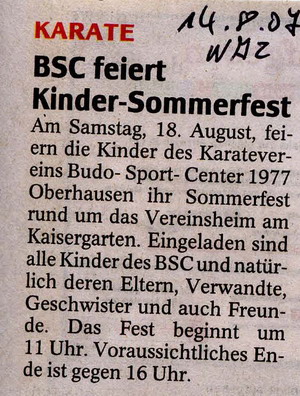 Die WAZ und die Karate Aktuell 04/2007 berichten über unsere Aktivitäten! © 2007 Budo Sport Center 1977 Oberhausen e.V.