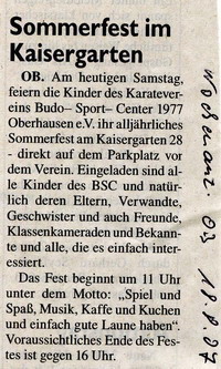 Der Wochenanzeiger Oberhausen berichten über unsere Aktivitäten! © 2007 Budo Sport Center 1977 Oberhausen e.V.