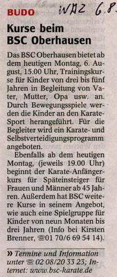 Die WAZ und der Wochenanzeiger berichten über unsere neuen Angebote! © 2007 Budo Sport Center 1977 Oberhausen e.V.