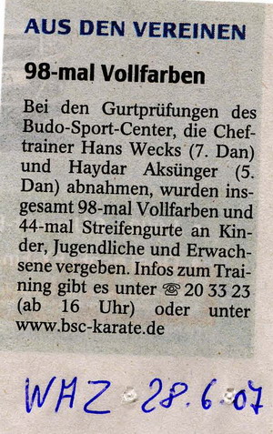 nächsten Kyu geprüft. Insgesamt wurden 98 Vollfarben und 44 Streifengurte